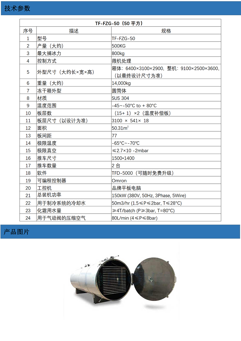 食品凍干機?5平方 (型號:TF-FZG-5)設(shè)備特點1、凍