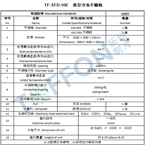 化妝品凍干機(jī)凍干粉加工成套設(shè)備包括灌裝線、凍干機(jī)、軋蓋機(jī),貼標(biāo)機(jī)等。其中上海拓紛TF-SFD-10E凍干機(jī)處理標(biāo)準(zhǔn)φ16西林瓶46000支。預(yù)凍最低溫度-55℃,捕水冷凝溫度最低-75℃,極限真空1PA.材質(zhì)304和316可選。選用CIP/SIP功能,主要配件采用進(jìn)口品牌,保證設(shè)備質(zhì)量。生產(chǎn)按ISO9001質(zhì)量管理體系,制造工藝,設(shè)備完全符合cGMP 標(biāo)準(zhǔn)。PLC系統(tǒng)電腦操作,控制凍干機(jī)的所有功能。根據(jù)存儲(chǔ)到存儲(chǔ)器中的工藝參數(shù)和程序,PLC 可以完成整個(gè)生產(chǎn)系統(tǒng)的操作。系統(tǒng)穩(wěn)定安全??商峁?/span>4Q認(rèn)證文件,提供完善培訓(xùn)及服務(wù)。提供系列凍干粉化妝品凍干機(jī)選擇。