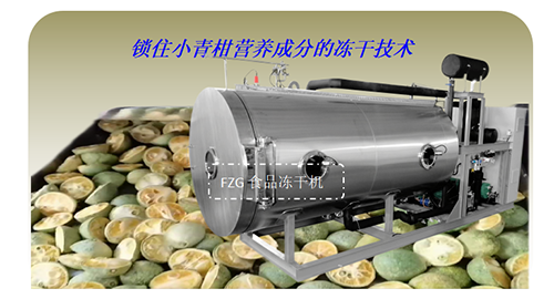 因?yàn)槭称穬龈蓹C(jī)真空冷凍干燥處理過程中一直在低溫和真空環(huán)境中,所以不發(fā)生氧化反應(yīng)、不發(fā)生微生物的生長和酶的作用,保存小青柑物質(zhì)中的熱敏成分,升華干燥,水分升華后,物質(zhì)剩留在凍結(jié)時(shí)的冰架之中,經(jīng)過凍干后小青柑體積幾乎不變、呈疏松多孔的海綿狀,內(nèi)表面積大,復(fù)水性良好。通過食品凍干機(jī)能除去95%以上的水分,這樣能在常溫下保存較長的時(shí)間。