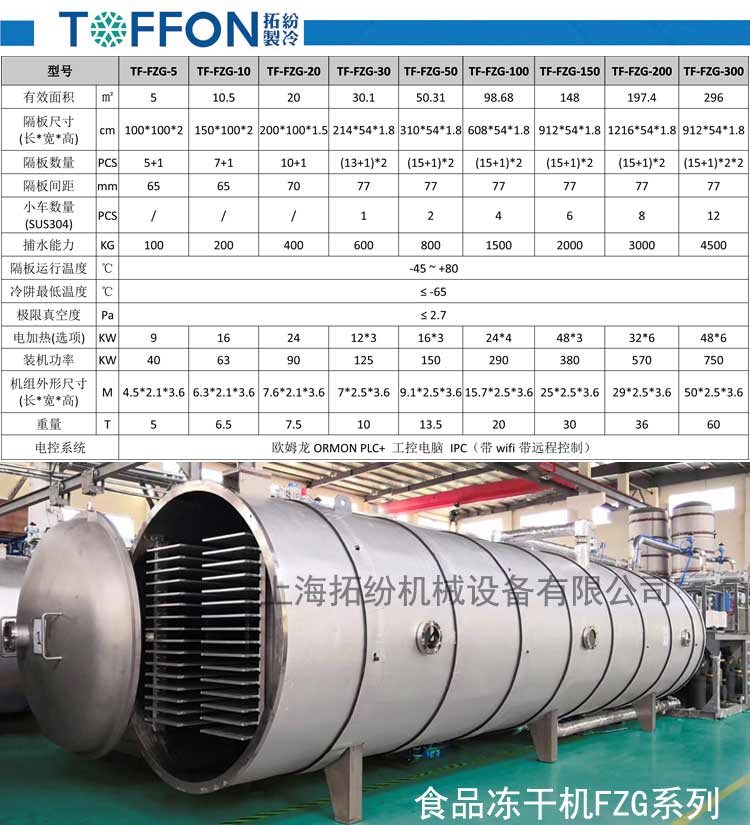 上海拓紛廠家食品級生產(chǎn)型凍干機型號TF-FZG-5(5平方米
