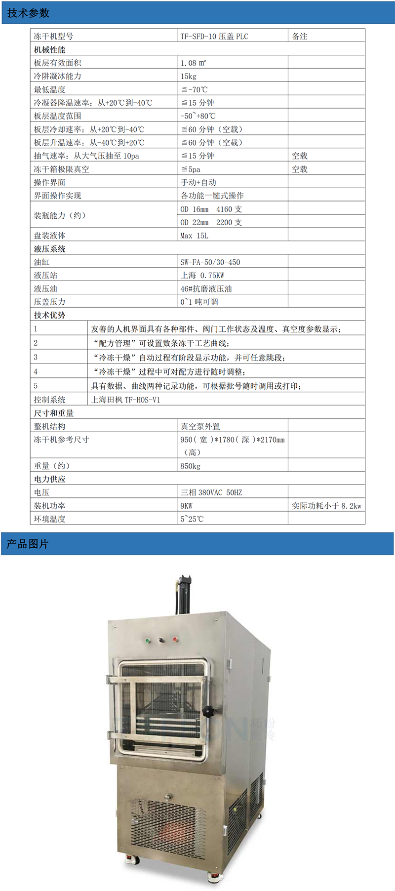 壓蓋型真空冷凍干燥機TF-SFD-10此款真空冷凍干燥機是上