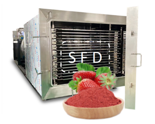 草莓是薔薇科植物,果實鮮紅艷麗、柔嫩多汁、濃郁芳香,草莓含有豐富的蛋白質(zhì)、果糖、葡萄糖、檸檬酸、胡蘿卜素、膳食纖維和維生素物質(zhì)等,具有較高的經(jīng)濟(jì)價值。因為草莓采摘期短,無法長時間保存。隨著凍干技術(shù)的發(fā)展,利用升華原理,通過食品凍干機(jī)設(shè)備加工處理能解決草莓存在的問題。