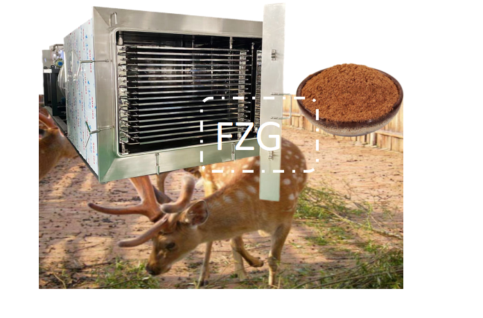 真空冷凍干燥機簡稱凍干機,是利用升華的原理進行真空冷凍干燥物料制品,除去水分,能保持物料原有的特性、體型、顏色基本不變。隨著凍干技術(shù)發(fā)展,凍干機設(shè)備已應(yīng)用到各種食品凍干、益生菌凍干、生物制藥凍干和中藥材凍干等。今天具體介紹真空冷凍干燥機應(yīng)用于鹿茸凍干粉加工。