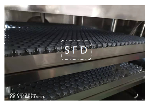 把處理好的含水膠原蛋白原液,通過凍干機設備低溫-50℃的溫度冷凍至固態(tài),然后凍干機設備的真空泵機組啟動工作把箱體內(nèi)部形成真空環(huán)境,達到要求的真空度后,固態(tài)膠原蛋白制品的水分在真空環(huán)境下進行升華,通過加熱系統(tǒng)控制物料制品的升華速度,固態(tài)的水分不經(jīng)液態(tài)直接升華為氣體,在凍干機設備干燥升華分為階一次干燥階段和解析干燥階段,分別干燥物料制品的流離水和結合水,升華出的水蒸氣通過凍干機設備的冷凝器冷凝成冰收集在捕水器中,達到除去水分的目的,得到含水1%左右的膠原蛋白凍干粉。
