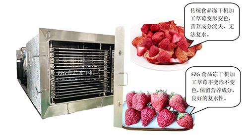 凍干食品具有無添加、天然、健康營(yíng)養(yǎng)和能在常溫下長(zhǎng)時(shí)間保存,以及具有復(fù)水性的特點(diǎn)。應(yīng)用行業(yè)廣泛,深受人們喜歡!但是市場(chǎng)上大部分的凍干食品,因凍干工藝和食品凍干機(jī)設(shè)備不滿足要求,導(dǎo)致凍干食品塌陷變形和變色、以及營(yíng)養(yǎng)成分流失和無法復(fù)水的問題。目前利用創(chuàng)新技術(shù)的FZG食品凍干機(jī)解決了傳統(tǒng)食品凍干機(jī)的存在問題。