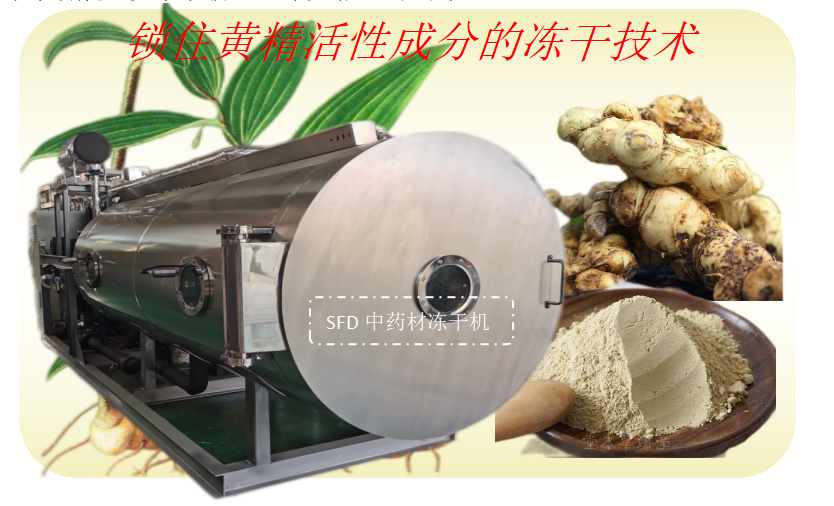 黃精提取液在中藥材凍干機(jī)的低溫真空升華干燥過程中,酶的生長和氧化基本不會產(chǎn)生,干燥后成多孔海綿狀,所以黃精凍干粉具有營養(yǎng)成分不流失,復(fù)水性好,能在常溫下保存1~3年等優(yōu)勢特點(diǎn)。SFD中藥材凍干機(jī)目前廣泛應(yīng)用于黃精凍干、石斛凍干、黃芪凍干、黃花菜凍干、天麻凍干、三七凍干等中藥材和提取液加工。